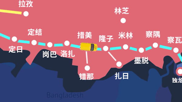 进入西藏阿里后又在喜马拉雅山脉和冈底斯山脉之间穿行